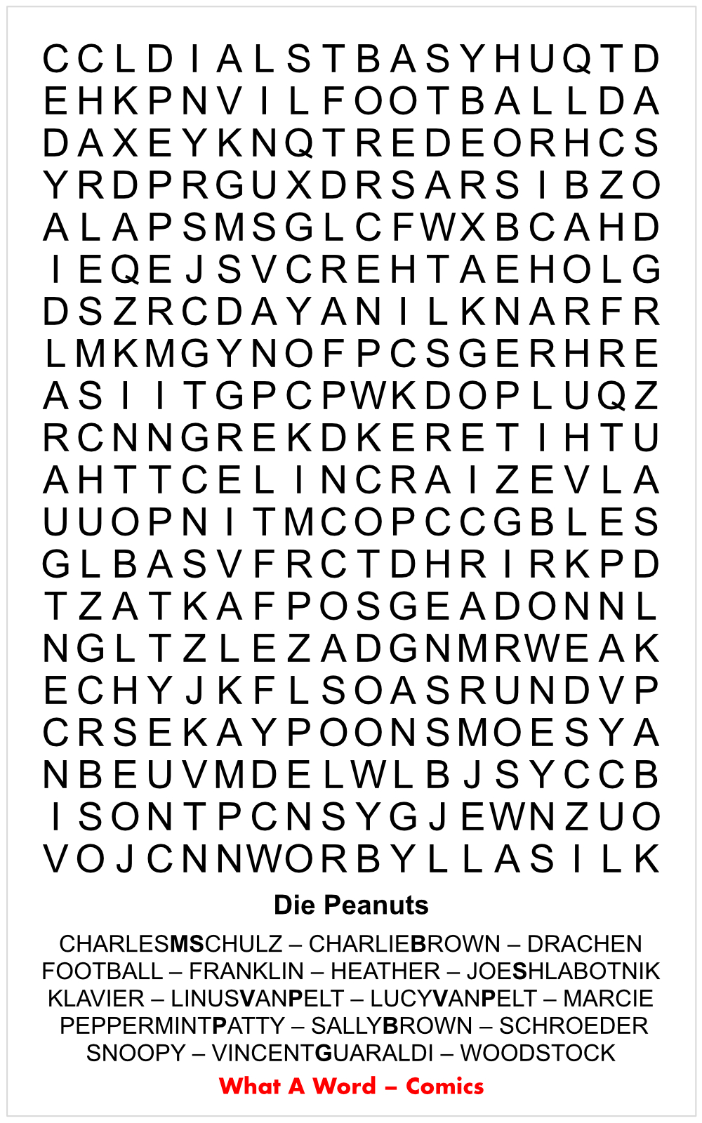 Charlie Brown : Die Hauptfigur der Comicstrips Die Peanuts des US-amerikanischen Zeichners Charles M. Schulz. Die Strips wurden 1947 unter dem Namen Li'l Folks erstmals veröffentlicht. Charles M. Schulz starb einen Tag vor der Veröffentlichung des letzten Strips im Jahr 2000.