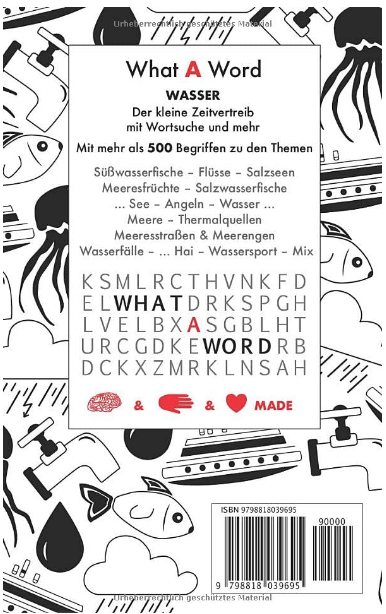 Mit mehr als 500 Begriffen zu den Themen Süßwasserfische – Flüsse – Salzseen – Meeresfrüchte – Salzwasserfische – … See – Angeln – Wasser … – Meere – Thermalquellen – Meeresstraßen & Meerengen – Wasserfälle – … Hai – Wassersport – Mix. Mit interessanten Fakten und Illustrationen zum zählen und ausmalen.