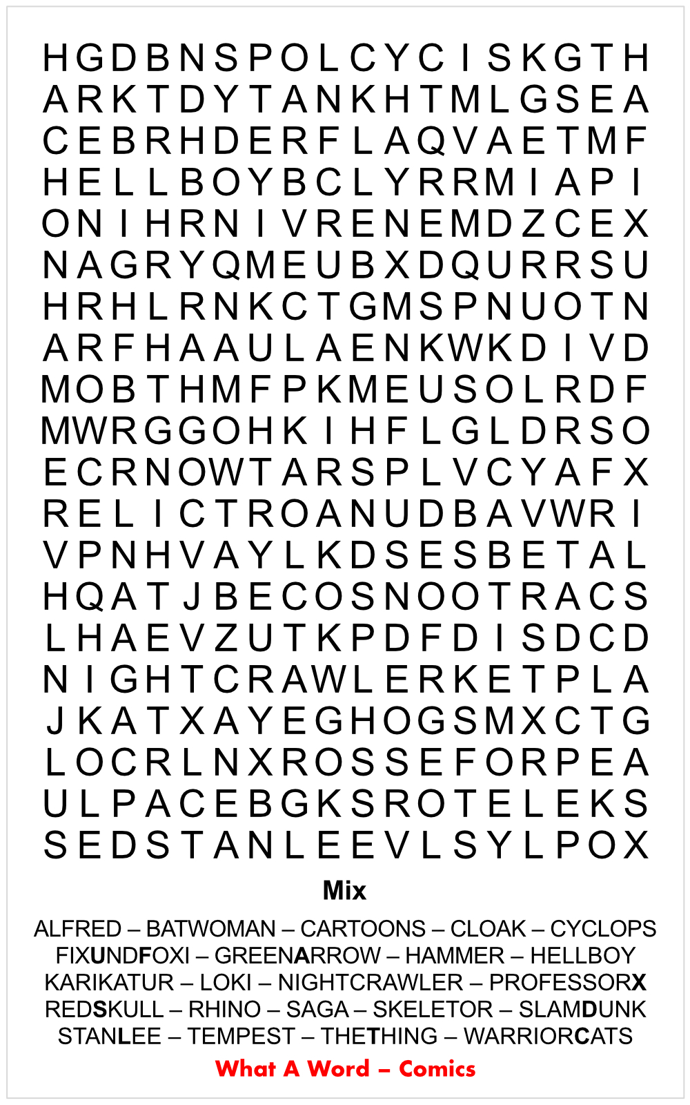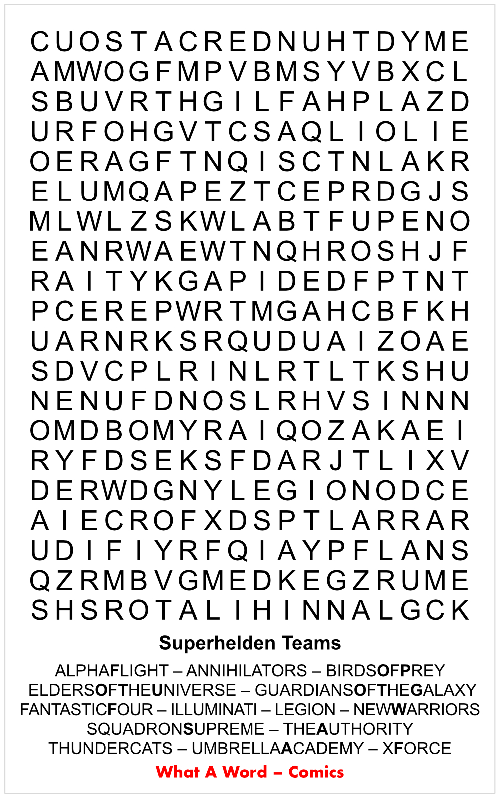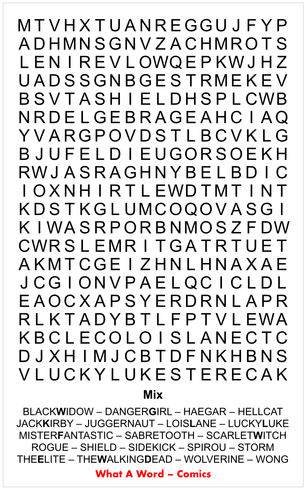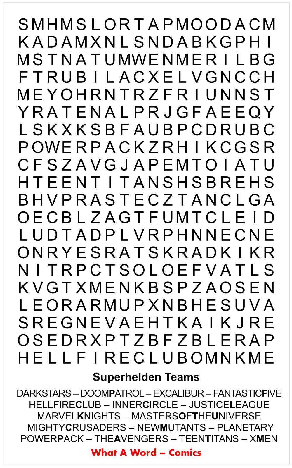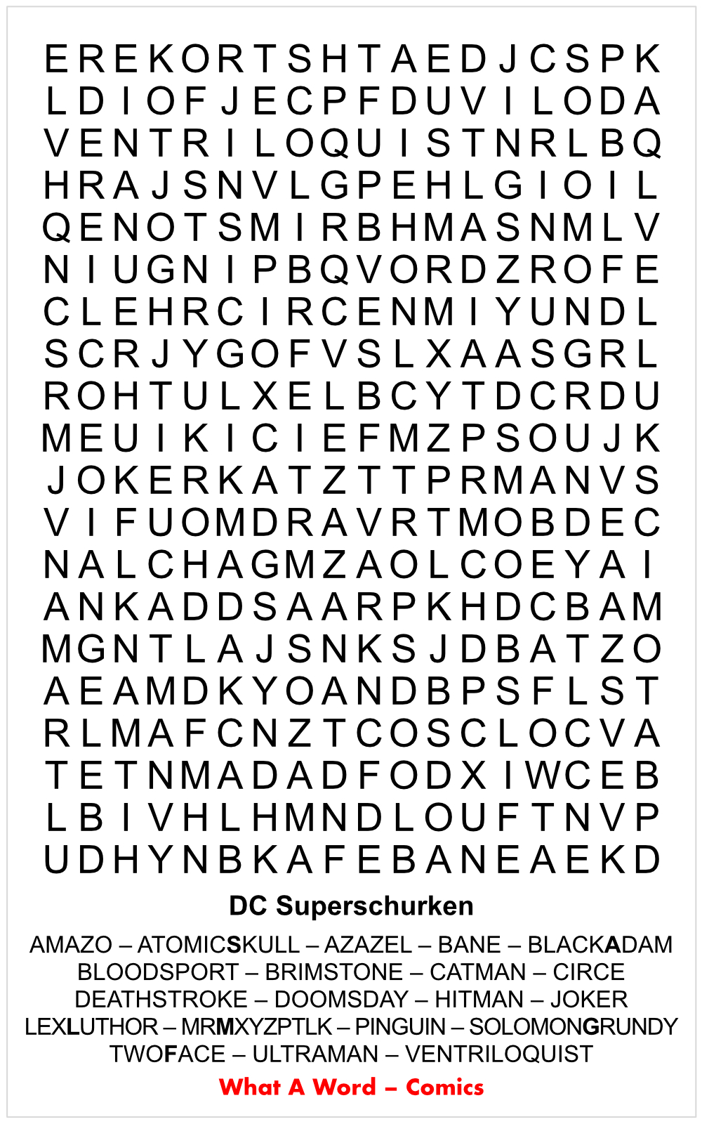Mit mehr als 400 Begriffen zu den Themen Marvel Superhelden – Comiczeichner – DC Superschurken – Superhelden Teams – Micky Maus – DC Superhelden – Mangas – Marvel Superschurken – Asterix – Graphic Novels – Comic Strips – Die Peanuts – Superschurken Mix – Donald Duck – Mix. Mit interessanten Fakten und Illustrationen zum zählen und ausmalen.