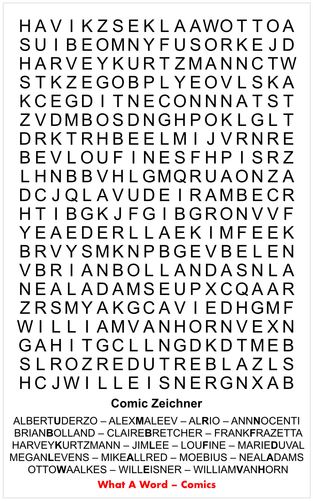 Harvey Kurtzmann : Der US-amerikanische Zeichner wurde 1924 geboren. Er war vor allem für seine Arbeit am Comic Mad und den Comicstrips Little Annie Fanny im Playboy bekannt.